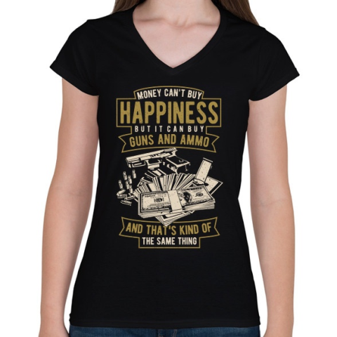 1 kép PRINTFASHION Pénz, fegyver, boldogság - Női V-nyakú póló - Fekete
