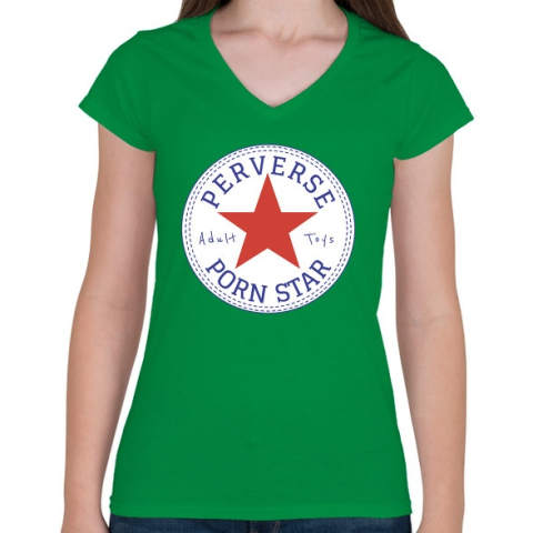 1 kép PRINTFASHION Perverz pornósztár - Női V-nyakú póló - Zöld