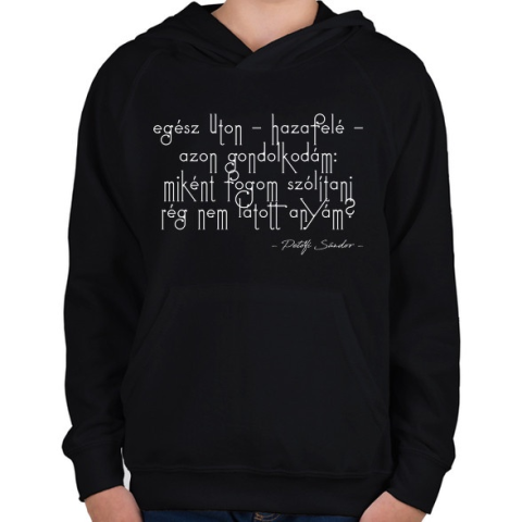 1 kép PRINTFASHION Petőfi Sándor - Füstbe ment terv - Gyerek kapucnis pulóver - Fekete