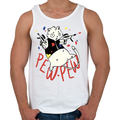 1 kép PRINTFASHION Pew pew cat - Férfi atléta - Fehér
