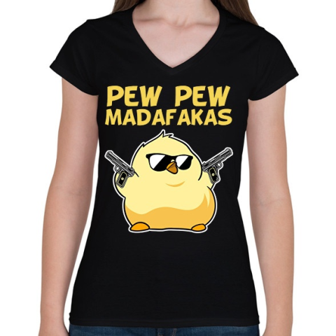 1 kép PRINTFASHION Pew Pew madafakas csirke - Női V-nyakú póló - Fekete