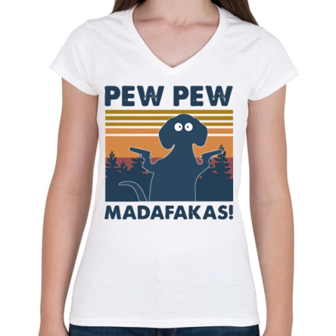 1 kép PRINTFASHION Pew pew madafakas kutya - Női V-nyakú póló - Fehér