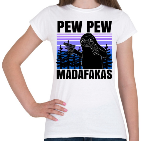 1 kép PRINTFASHION Pew Pew Madafakas lajhár - Női póló - Fehér
