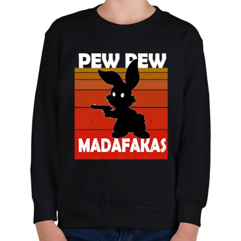 1 kép PRINTFASHION Pew pew madafakas nyuszi - Gyerek pulóver - Fekete