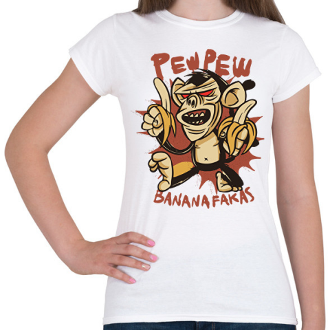 1 kép PRINTFASHION Pew pew majom bananafakas - Női póló - Fehér
