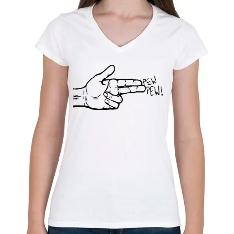 1 kép PRINTFASHION Pew Pew - Női V-nyakú póló - Fehér