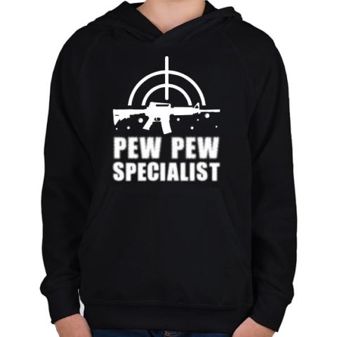 1 kép PRINTFASHION Pew pew speciaist - Gyerek kapucnis pulóver - Fekete