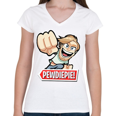 1 kép PRINTFASHION Pewdiepie - Női V-nyakú póló - Fehér