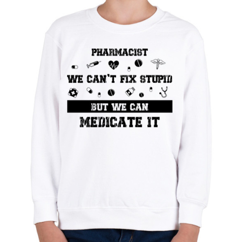 1 kép PRINTFASHION Pharmacist - we can't fix stupid - Gyerek pulóver - Fehér