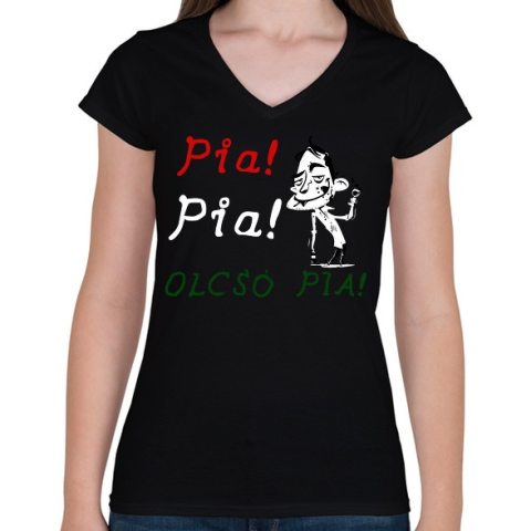 1 kép PRINTFASHION PIA PIA OLCSÓPIA - Női V-nyakú póló - Fekete
