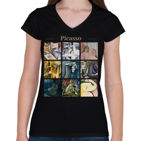 1 kép PRINTFASHION Picasso - részletek - Női V-nyakú póló - Fekete