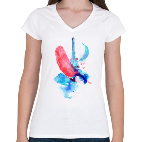 1 kép PRINTFASHION Pigeons of Paris - Női V-nyakú póló - Fehér