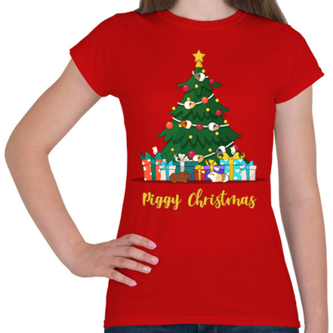 1 kép PRINTFASHION Piggy Christmas - Női póló - Piros