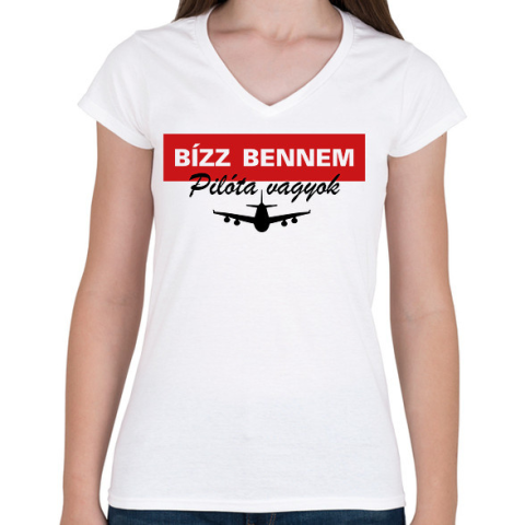 1 kép PRINTFASHION Pilóta vagyok - Női V-nyakú póló - Fehér