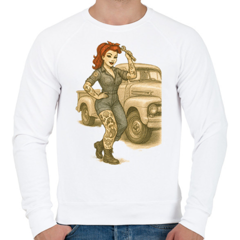 1 kép PRINTFASHION Pin up - Férfi pulóver - Fehér