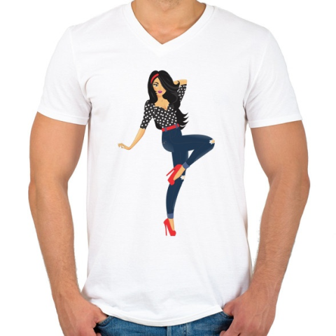 1 kép PRINTFASHION Pin up lány - Férfi V-nyakú póló - Fehér