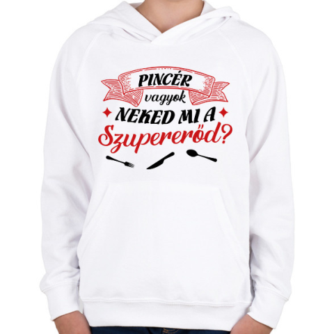 1 kép PRINTFASHION Pincér vagyok - Gyerek kapucnis pulóver - Fehér