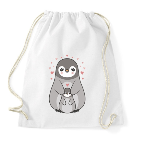 1 kép PRINTFASHION Pingvin család - Sportzsák, Tornazsák - Fehér