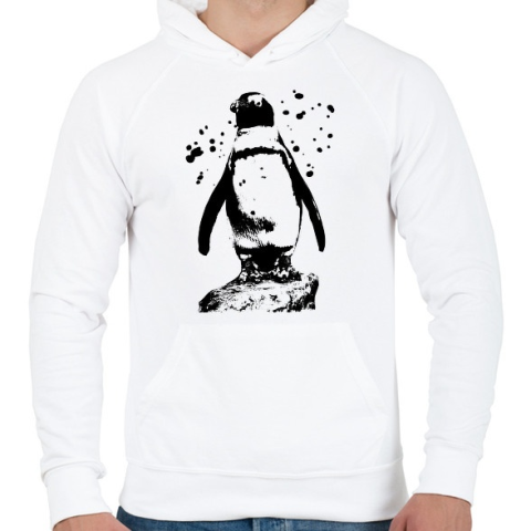 1 kép PRINTFASHION pingvin rajz - Férfi kapucnis pulóver - Fehér