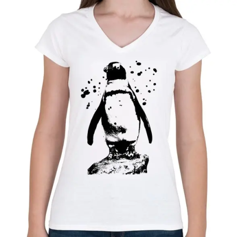 1 kép PRINTFASHION pingvin rajz - Női V-nyakú póló - Fehér