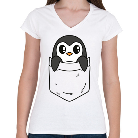 1 kép PRINTFASHION Pingvin zsebminta - Női V-nyakú póló - Fehér