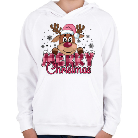 1 kép PRINTFASHION Pink rénszarvas - Gyerek kapucnis pulóver - Fehér