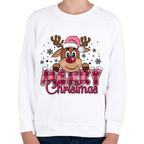 1 kép PRINTFASHION Pink rénszarvas - Gyerek pulóver - Fehér