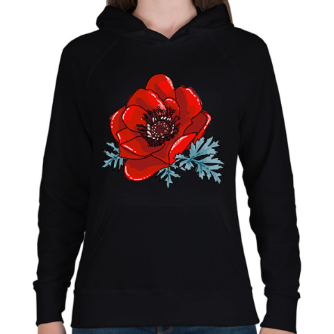 1 kép PRINTFASHION pipacs - Női kapucnis pulóver - Fekete