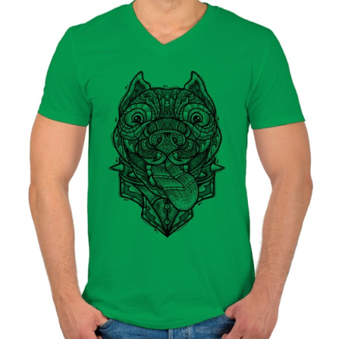 1 kép PRINTFASHION Pitbull - Férfi V-nyakú póló - Zöld