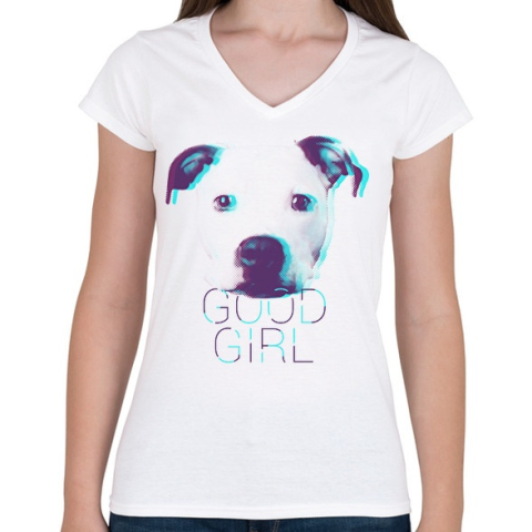 1 kép PRINTFASHION Pitbull - Good Girl - Női V-nyakú póló - Fehér