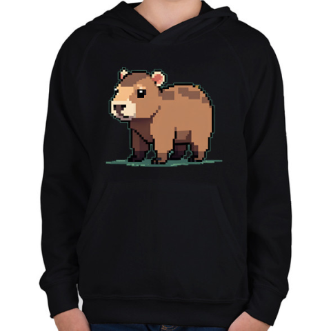 PRINTFASHION pixel capybara - Gyerek kapucnis pulóver - Fekete