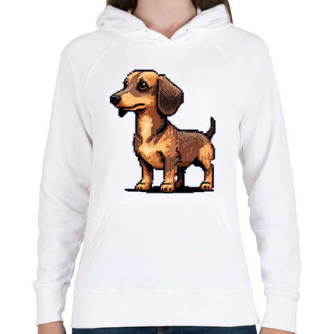 PRINTFASHION pixel tacskó - Női kapucnis pulóver - Fehér