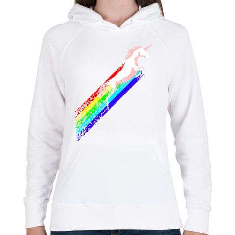 PRINTFASHION Pixel unicorn - Női kapucnis pulóver - Fehér