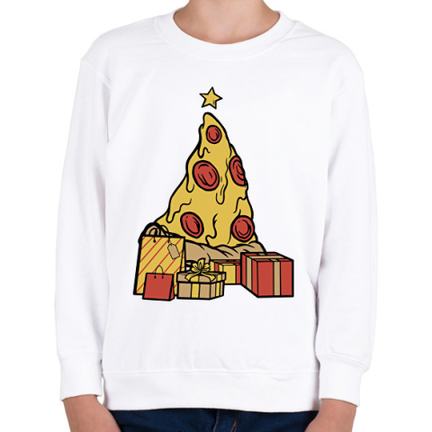 1 kép PRINTFASHION Pizza karácsonyfa - Gyerek pulóver - Fehér