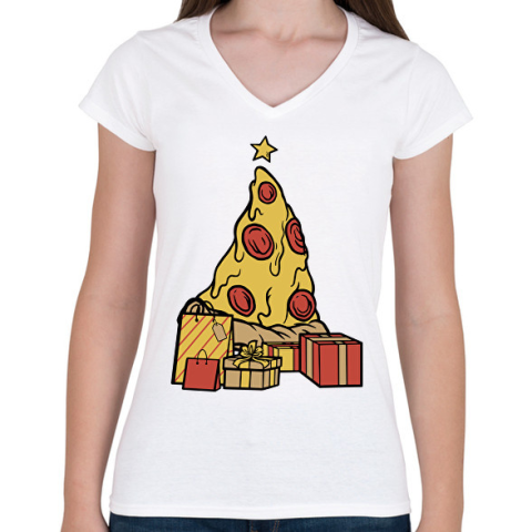 1 kép PRINTFASHION Pizza karácsonyfa - Női V-nyakú póló - Fehér