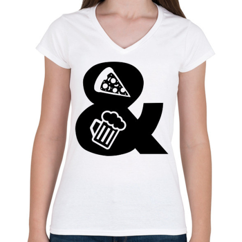 1 kép PRINTFASHION Pizza & Sör - Női V-nyakú póló - Fehér