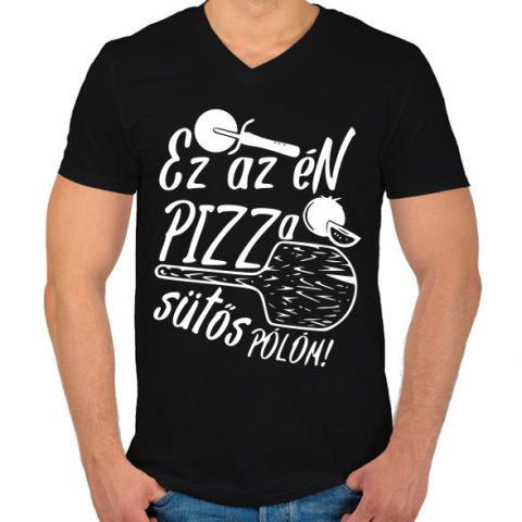 1 kép PRINTFASHION Pizza sütős pólóm - Férfi V-nyakú póló - Fekete