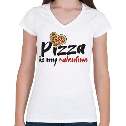 1 kép PRINTFASHION Pizza valentine - Női V-nyakú póló - Fehér