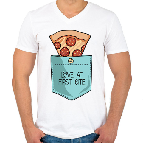 1 kép PRINTFASHION Pizzás zseb - Férfi V-nyakú póló - Fehér