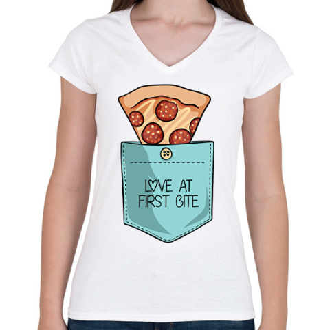 1 kép PRINTFASHION Pizzás zseb - Női V-nyakú póló - Fehér