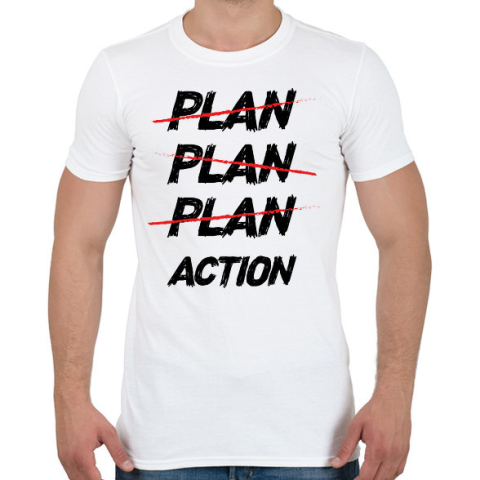 1 kép PRINTFASHION Plan, plan, plan, action - Férfi póló - Fehér