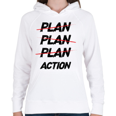 1 kép PRINTFASHION Plan, plan, plan, action - Női kapucnis pulóver - Fehér