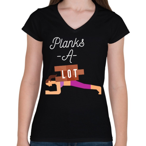 1 kép PRINTFASHION Planks A-Lot - Női V-nyakú póló - Fekete