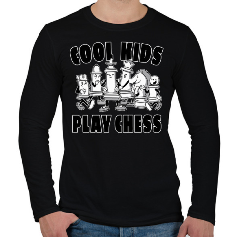 1 kép PRINTFASHION Play Chess - Sakk - Férfi hosszú ujjú póló - Fekete