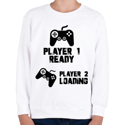 1 kép PRINTFASHION Player 1, Player 2 - Kismama - Gyerek pulóver - Fehér