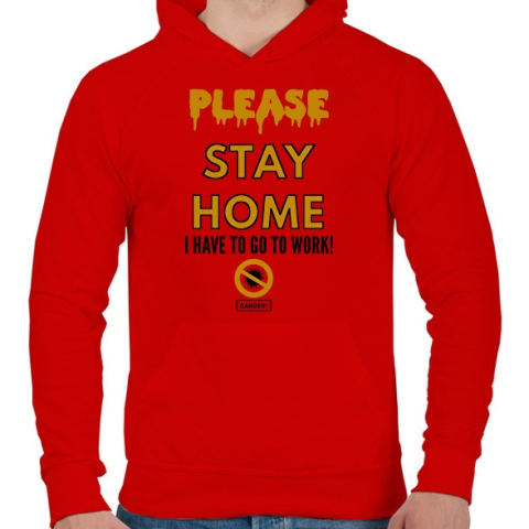 1 kép PRINTFASHION PLEASE STAY HOME - Férfi kapucnis pulóver - Piros