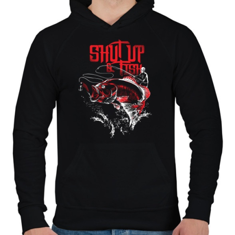 1 kép PRINTFASHION Pofa be és pecázz! - Férfi kapucnis pulóver - Fekete