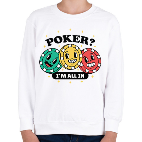 1 kép PRINTFASHION Póker - All in - Gyerek pulóver - Fehér