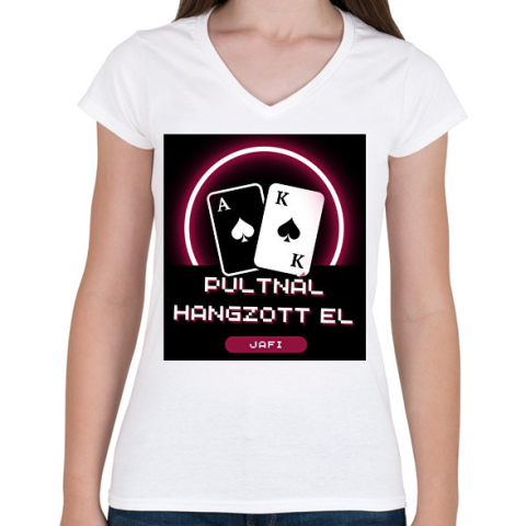 1 kép PRINTFASHION póker - Női V-nyakú póló - Fehér