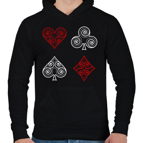 1 kép PRINTFASHION Póker szimbólumok - Férfi kapucnis pulóver - Fekete